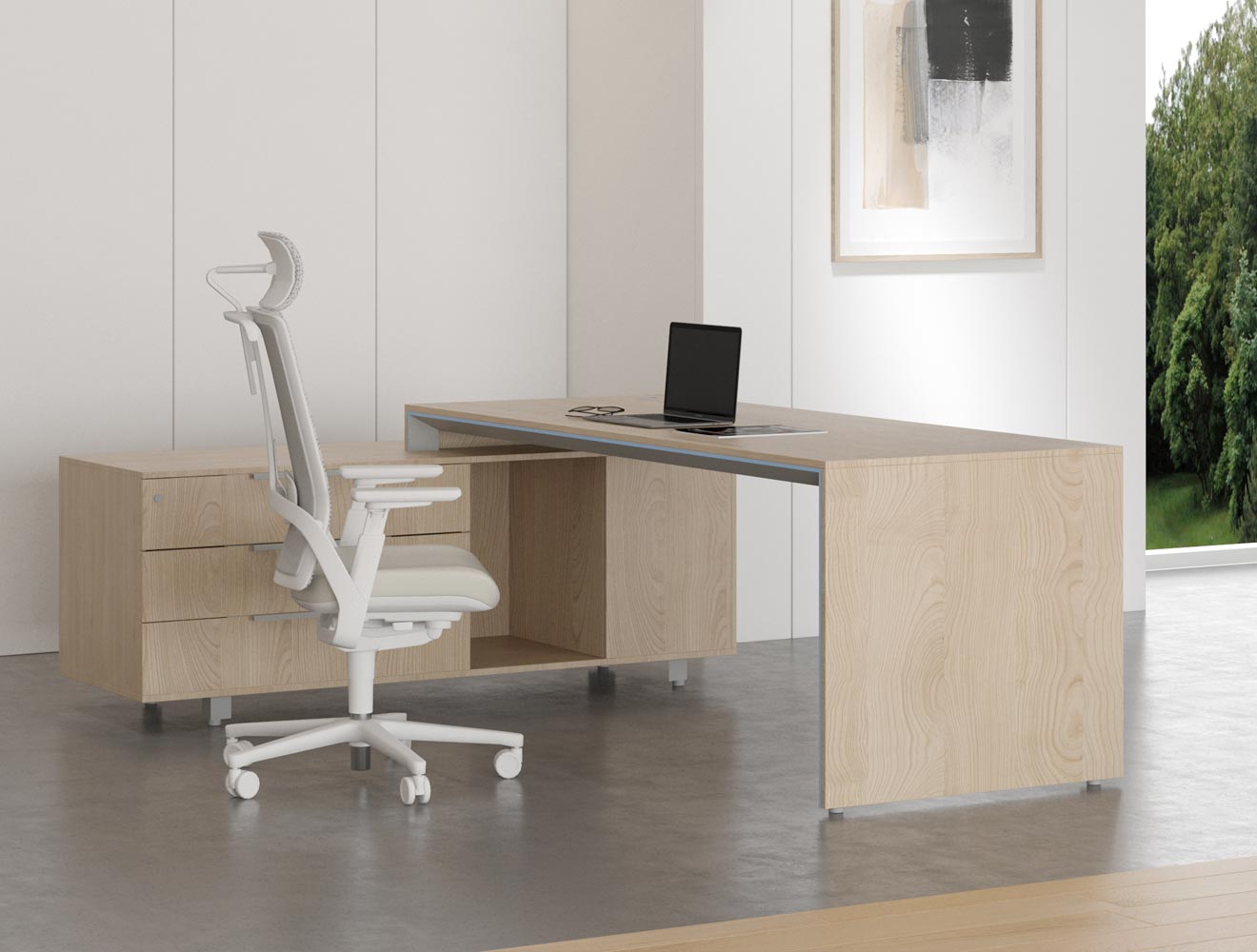 میز مدیریتی اینفیا مدل ساده، شیک و کاملاً امروزی، انتخابی ایدهآل برای فضاهای مدیریتی مینیمال است. ترکیب بدنهی تمام چوب با لبههای فلزی ظریف، ظاهری لوکس و در عین حال مدرن ایجاد کرده که بهخوبی با صندلی سفید ارگونومیک هماهنگ شده است. سطح وسیع میز امکان کار راحت، قرارگیری لپتاپ و لوازم اداری را فراهم میکند و فایل سهکشو متصل، فضای ذخیرهسازی کافی و دسترسی سریع را به کاربر میدهد. این میز علاوه بر زیبایی، بهدلیل ساختار محکم و طراحی کاربردیاش، یک انتخاب حرفهای برای دفاتر مدیریت و فضاهای کاری سطح بالا بهحساب میآید