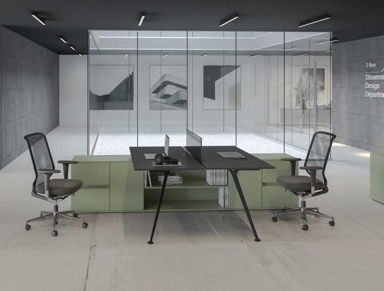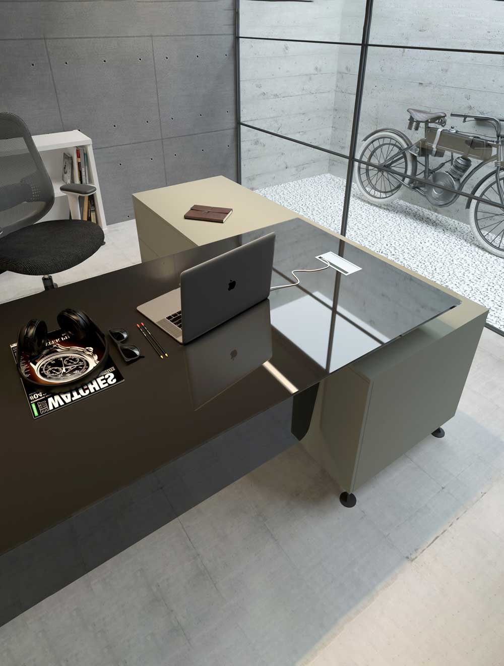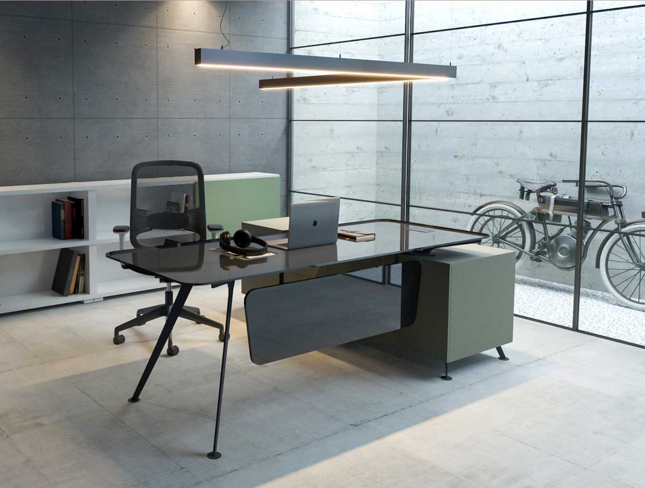 میز اداری سری SPIKE با طراحی مینیمال و بدنهی مستحکم فلزی، یک انتخاب حرفهای برای فضاهای مدرن اداری است. صفحهی شیشهای مات با ضخامت استاندارد، جلوهای شیک و سبک به محیط میدهد و در عین حال مقاومت بالایی در برابر خط و خش دارد. پایههای زاویهدار با فرم مهندسیشده، ثبات فوقالعادهای ایجاد میکنند و هماهنگی بصری جذابی با صندلیهای ارگونومیک مجموعه دارند. این میز برای دفاتر مدیریت، فضای اشتراکی و اتاقهای تیمی ایدهآل است و علاوه بر ظاهر لوکس، کاربری روان و راحتی بالایی ارائه میدهد