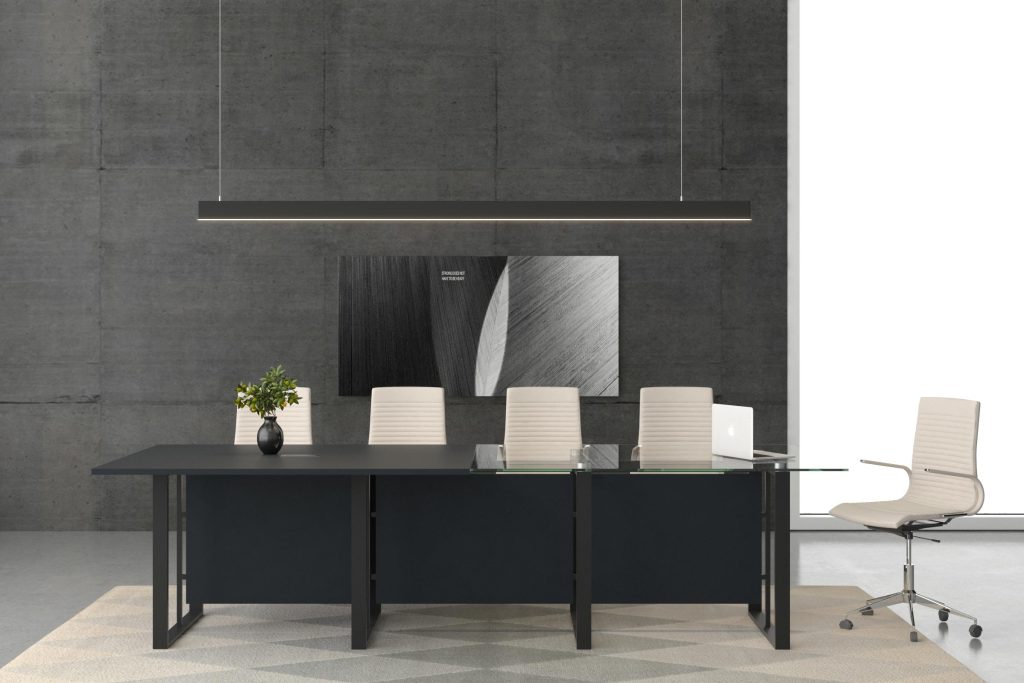 میز مدیریتی رینگ با طراحی مدرن و ساختار فلزی، استحکام بالایی دارد و در عین حال حس سنگینی ایجاد نمیکند. پایهها مجهز به پنل هستند که حریم خصوصی را حفظ میکند و فضای کافی برای صندلی رافراهم میکنند